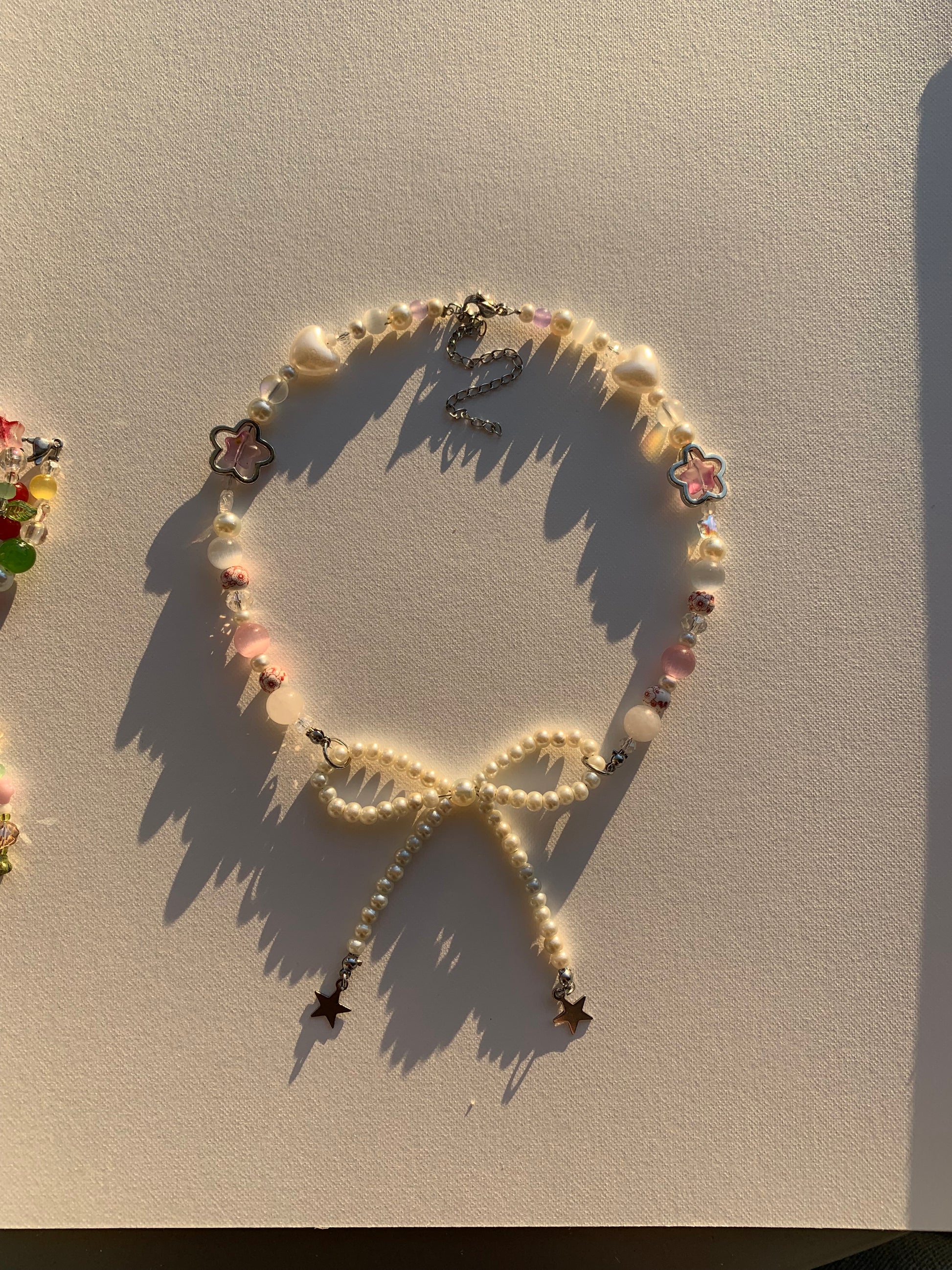 Materials: rose quartz, cat eye, glass beads, Stainless steel