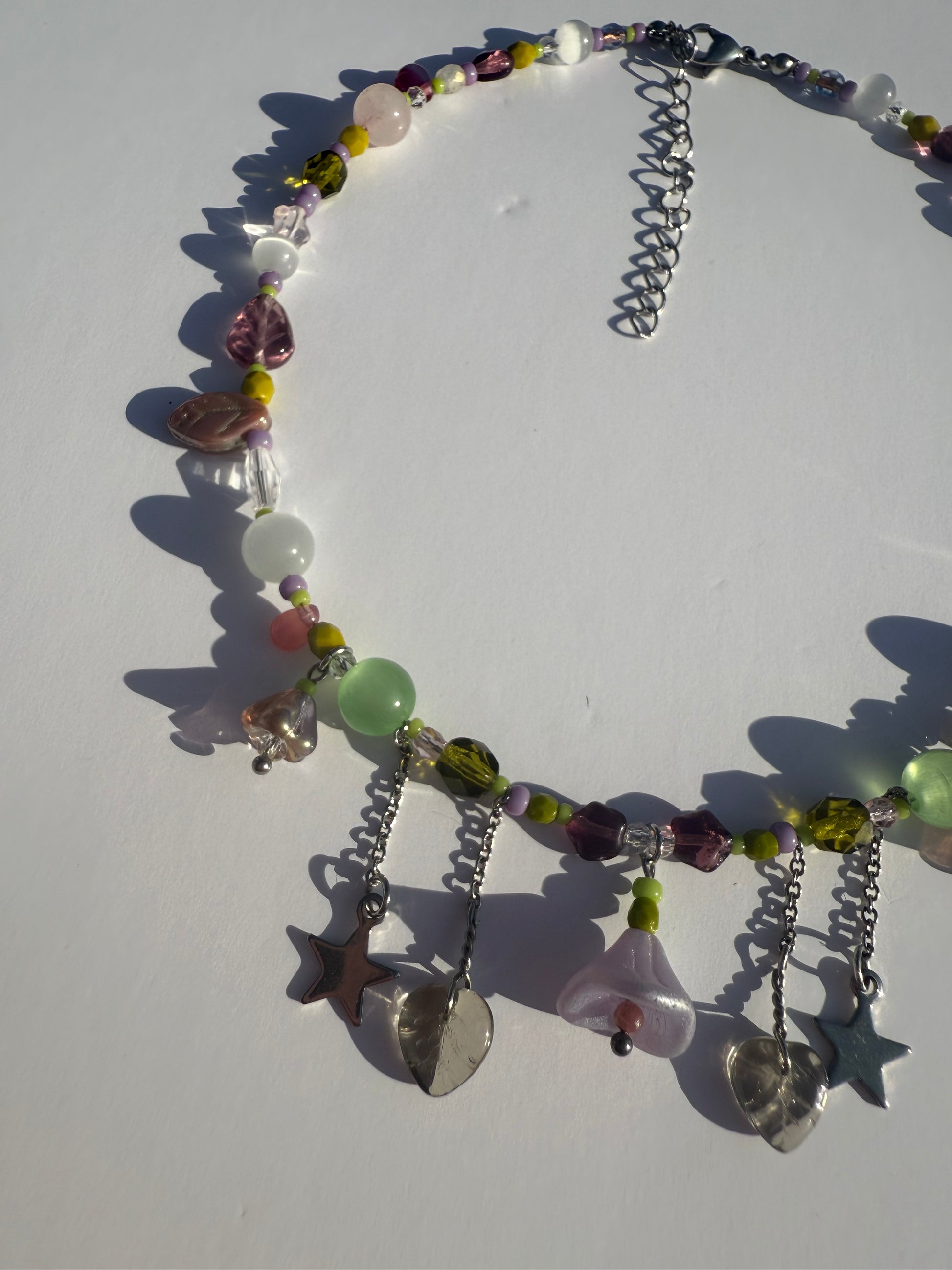 Materials: crystals, cat eye, glass beads, stainless steel